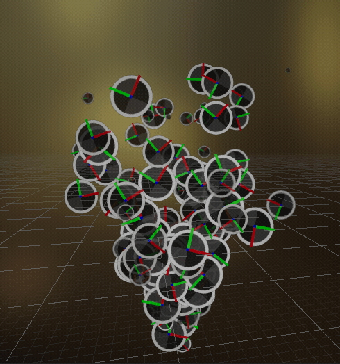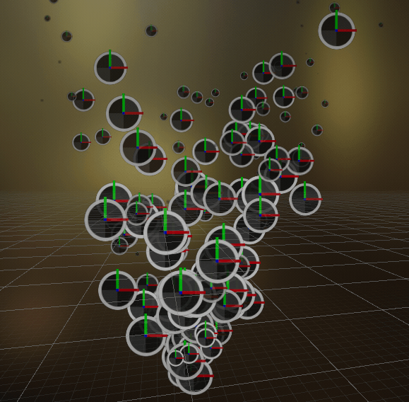 有設定 Set angle Z Random則是這樣,Z軸會亂數旋轉。