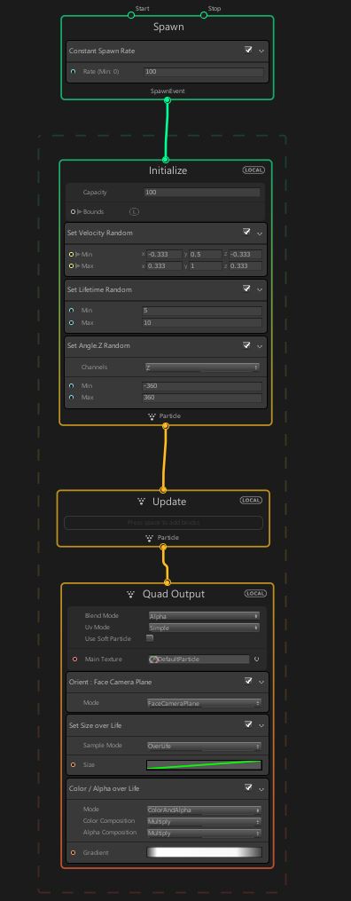 當我們打開VG,就會有基本上有必要的4大區塊,Spawn / Initialize / Update / Output