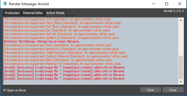 此時如果是使用非Arnold材質系統都會跳出錯誤提醒。